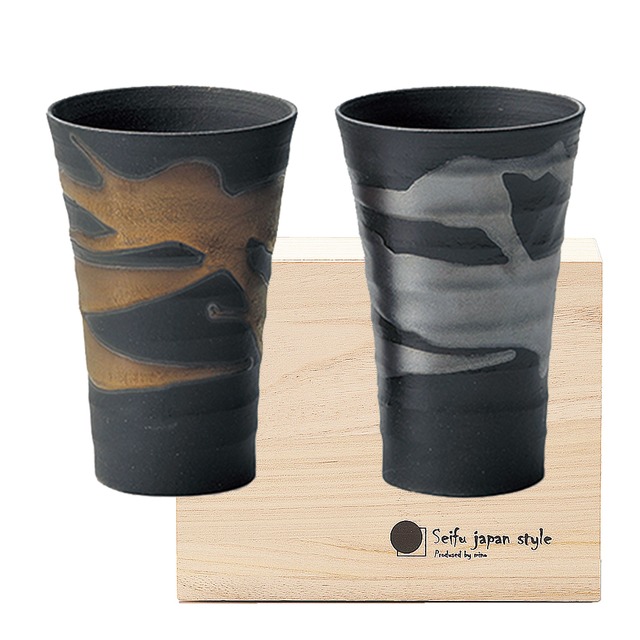 美濃焼 AWASAKA 清風の匠 田端繁道 金銀流し ロックカップペア(木箱入)(7-1813) 【送料無料】
