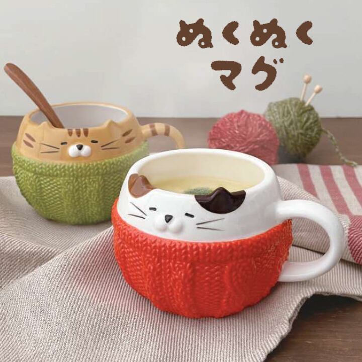 ぬくぬくマグ 寒がりネコたちがあったかニットに包まれたマグカップ ミケ 約280ml カラーボックスに入っておりギフトにもおススメです! (MG-47661)【送料無料】