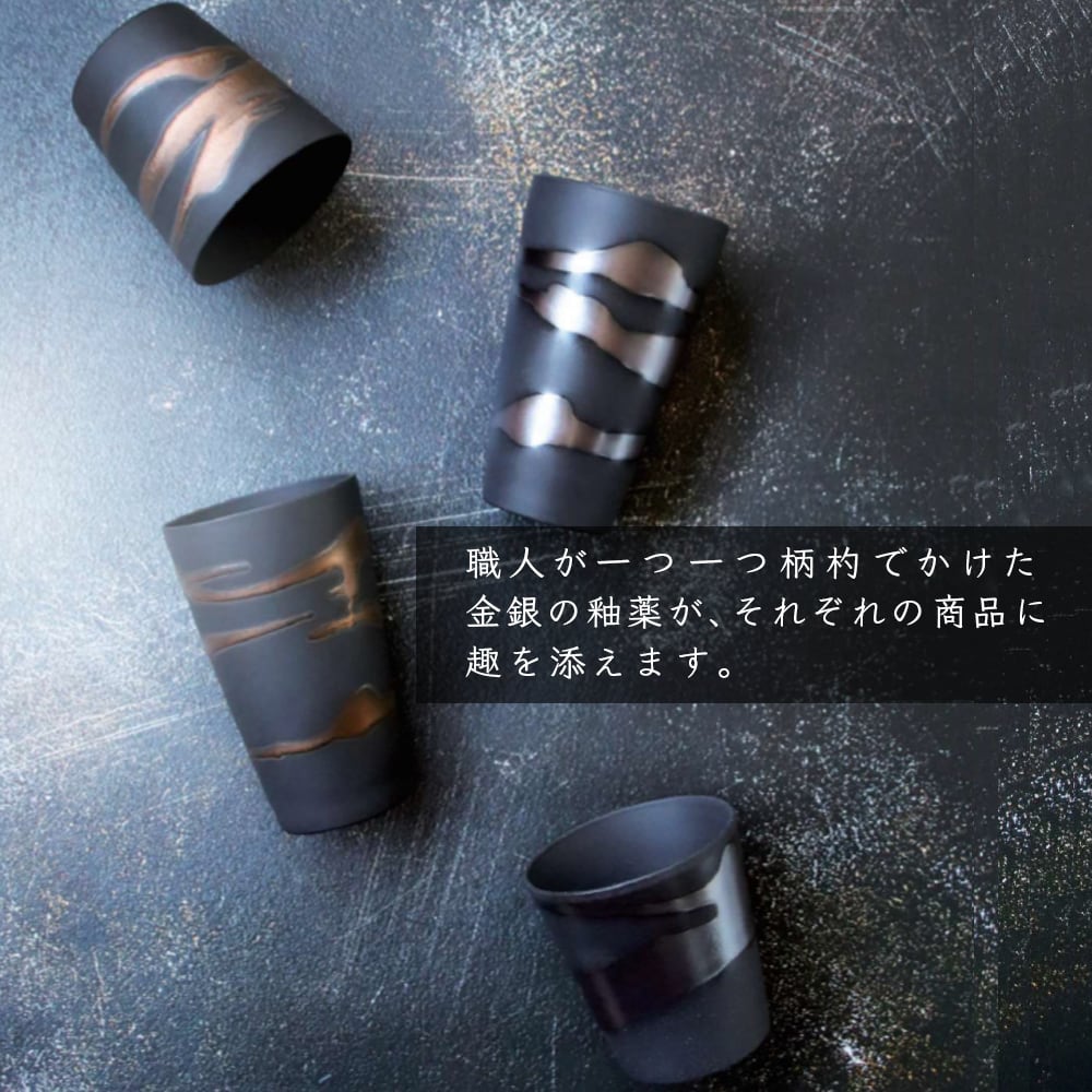 美濃焼 AWASAKA 清風の匠 田端繁道 金銀流し ロックカップペア(木箱入)(7-1813) 【送料無料】