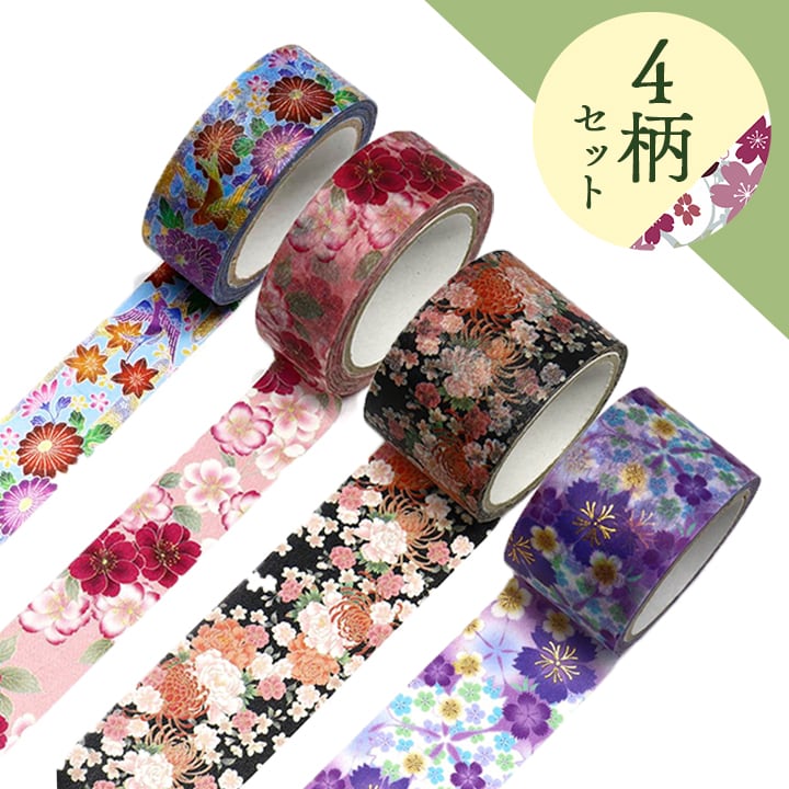 \10/31(金)までセール価格!/ 和紙マスキングテープ 15mm×7m(沖縄 牡丹/八重桜)&25mm×7m(牡丹菊桜/撫子) 4巻Dセット kimono美シリーズ【送料無料】