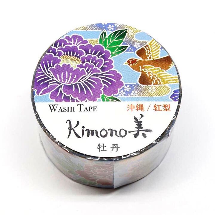 \10/31(金)までセール価格!/ 和紙マスキングテープ 紅 沖縄・紅型 牡丹 金箔グラデーション 25mm×7m Kimono美シリーズ (GR-1026)【送料無料】
