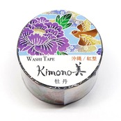 和紙マスキングテープ 紅 沖縄・紅型 牡丹 金箔グラデーション 25mm×7m Kimono美シリーズ (GR-1026)【送料無料】