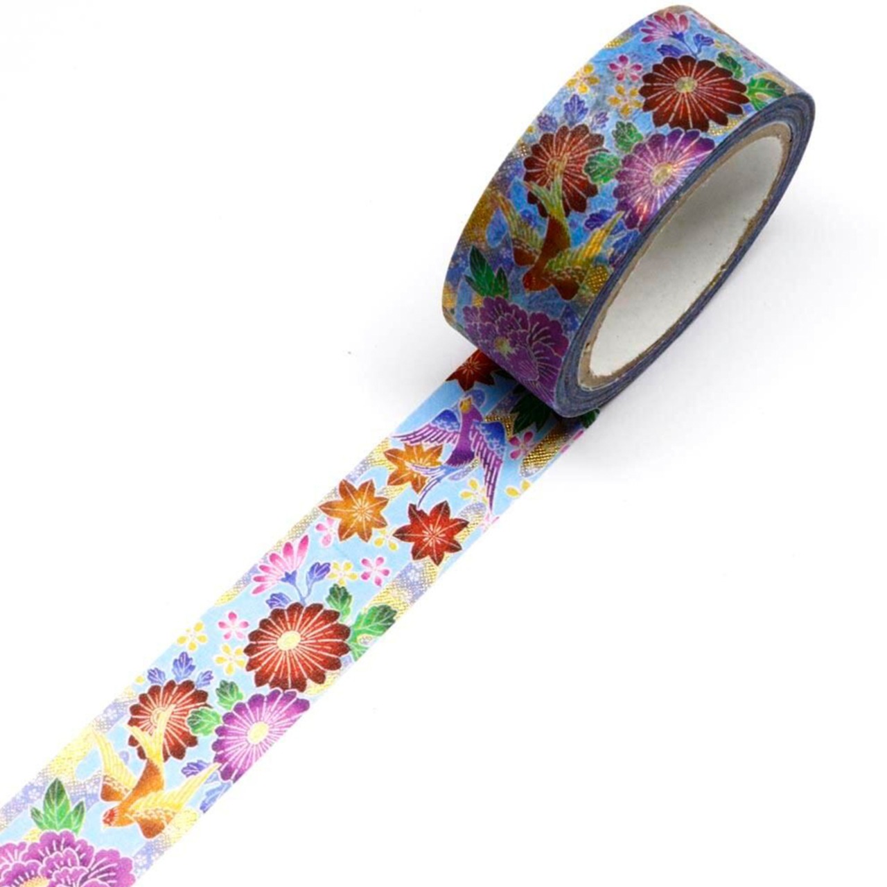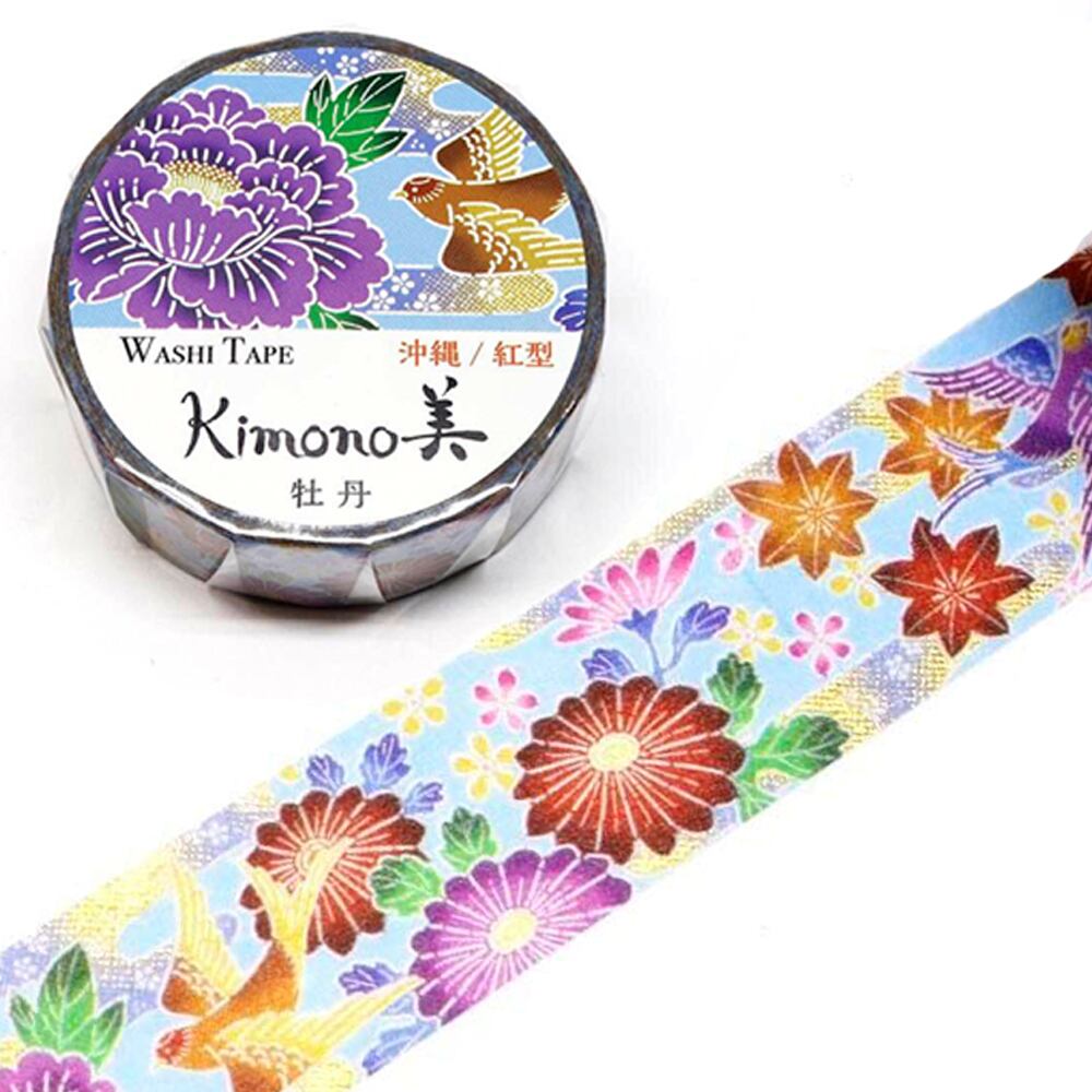和紙マスキングテープ 紅 沖縄・紅型 牡丹 金箔グラデーション 15mm×7m Kimono美シリーズ (GR-1025)【送料無料】