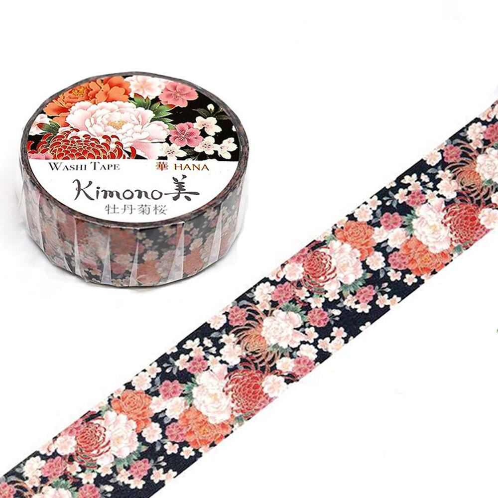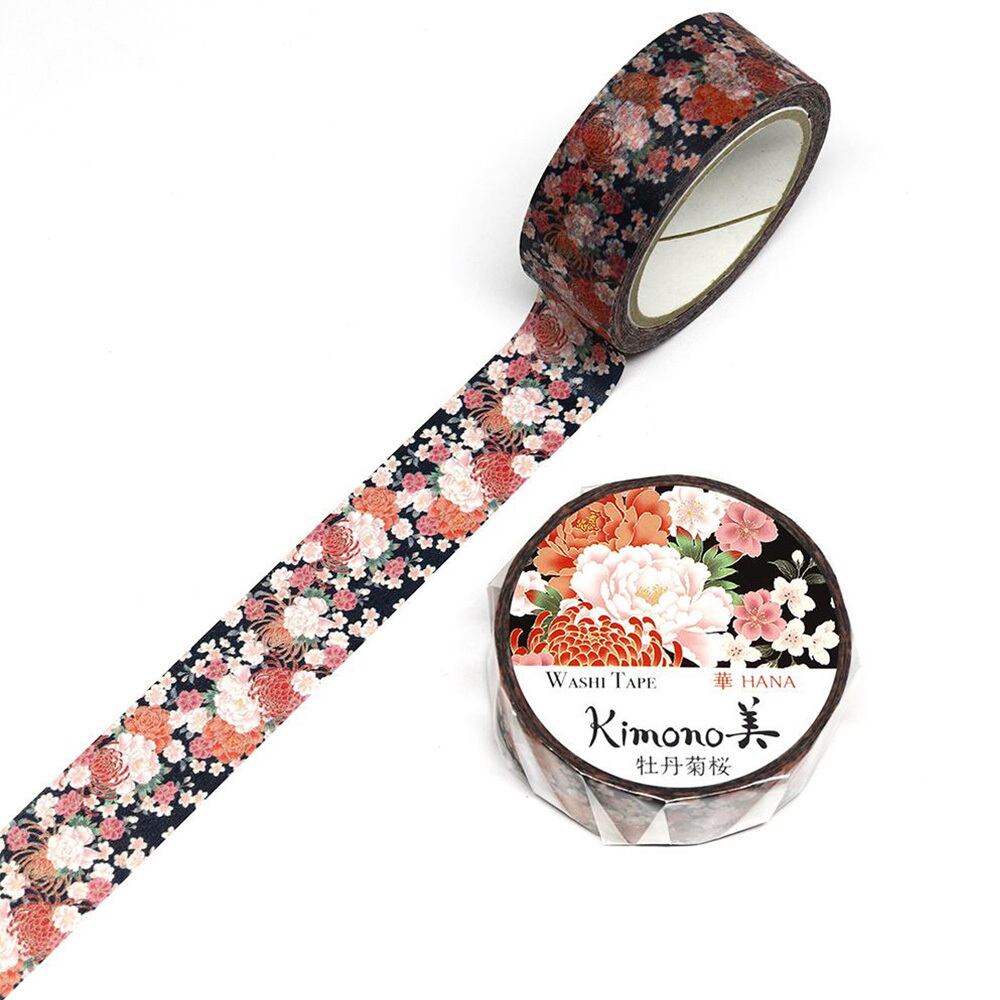 和紙マスキングテープ 華 牡丹菊桜 15mm×7m Kimono美シリーズ (GR-1009)【送料無料】